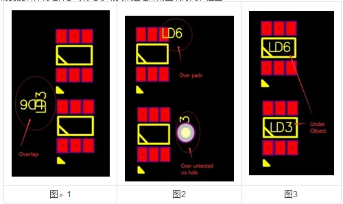 檢查放置在與焊盤重疊的電路焊盤上的元件參考指示器標(biāo)記,如圖2中圈出的第一個(gè)組件標(biāo)記。 由于它們通常被裁剪掉而沒有被打印,并且在PCB組裝和故障排除期間需要將組件參考標(biāo)記作為參考,所以您需要將這些標(biāo)記移動(dòng)到位于相應(yīng)組件旁邊的開放空間。