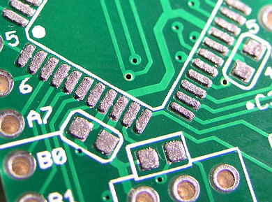 巨大的銅路徑覆蓋了一層銅層的PCB表面。