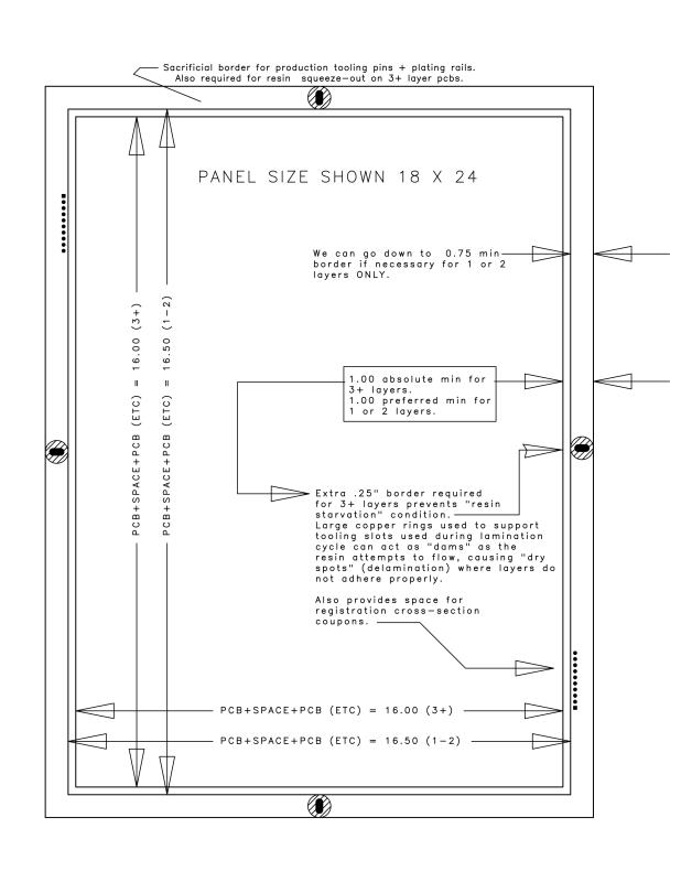 這有助于了解大多數(shù)PCB制造商在其層壓過程中使用機加工金屬板。 這些印版非常昂貴,所以制造商通常只會儲存一到兩種標(biāo)準(zhǔn)尺寸。 在美國,目前最常見的尺寸是18x24,其中一些也采用16x21或12x18的印版。 您需要了解,無論您的制造商將向您發(fā)送的任何尺寸的PCB或子面板都必須有效地使用此尺寸的材料。