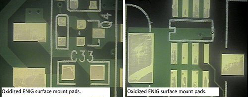 ENIG完成的印刷電路板由于暴露在潮濕環(huán)境中而嚴重氧化: