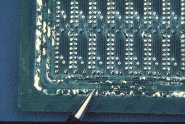 圖1顯示了焊接后從電路板表面抬起抗蝕劑的一個(gè)非常明顯的例子。 很簡(jiǎn)單,這是由于不正確的印制板規(guī)格。 錫/鉛不應(yīng)用于專(zhuān)業(yè)電路板上的抗蝕劑下。 當(dāng)錫/鉛進(jìn)入液相時(shí),它會(huì)膨脹并可能導(dǎo)致焊料和抗蝕劑之間的粘附力喪失。 如果抗蝕劑脆或薄,它將如圖1所示分開(kāi)。如果涂層的厚度小于3-5μm,則可以使用錫/鉛,因?yàn)樵诓ǚ搴富蚧亓骱笗r(shí)會(huì)有非常小的移動(dòng)。