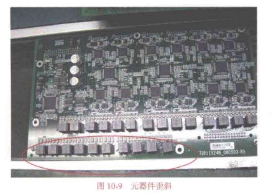 某板過貼片機后元器件歪斜,如圖10-9所示。
