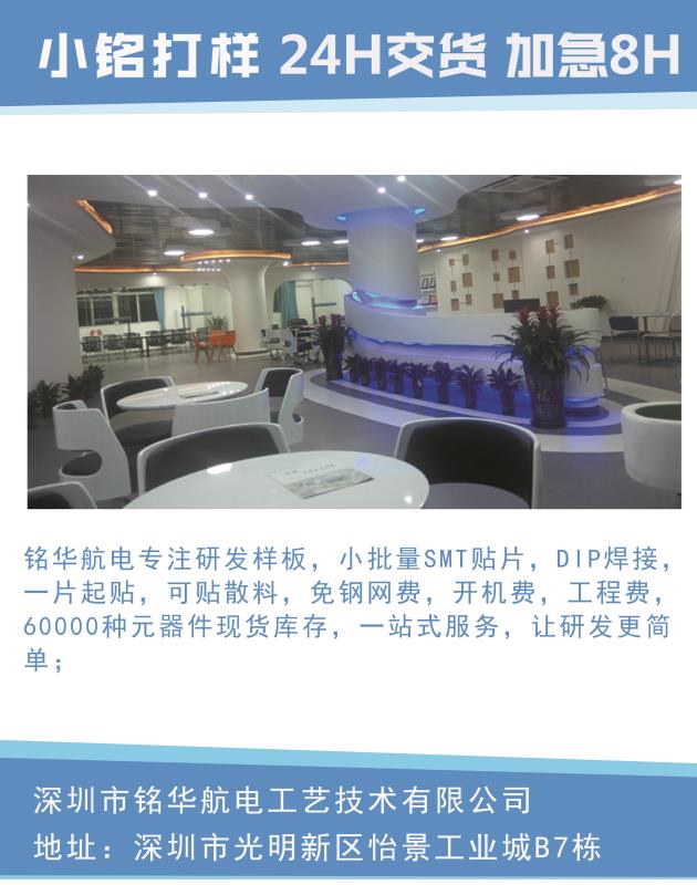 銘華航電是一家專業(yè)為電子行業(yè)創(chuàng)新型研發(fā)公司服務(wù)的平臺(tái),我們提供包括研發(fā)方案平臺(tái)、物料選型、樣板制作、小批量制作、檢測(cè)等服務(wù)內(nèi)容,提 升研發(fā)效益。